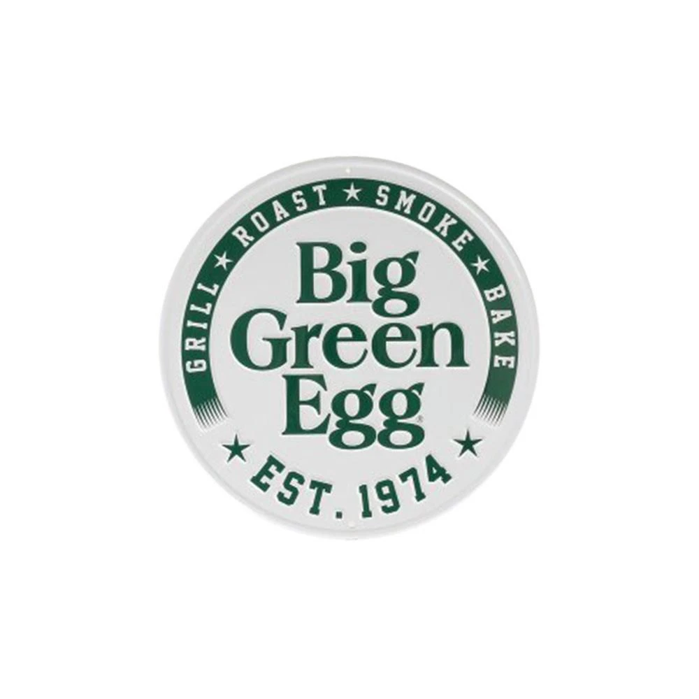Met de Big Green Egg Round White Sign Est. 1974 decoratie geeft u uw tuin een echte Eggheads uitstraling. Dit ronde bord is gemaakt van aluminium en kan goed aan de muur bevestigd worden. De diameter van deze Big Green Egg decoratie is 30 cm.