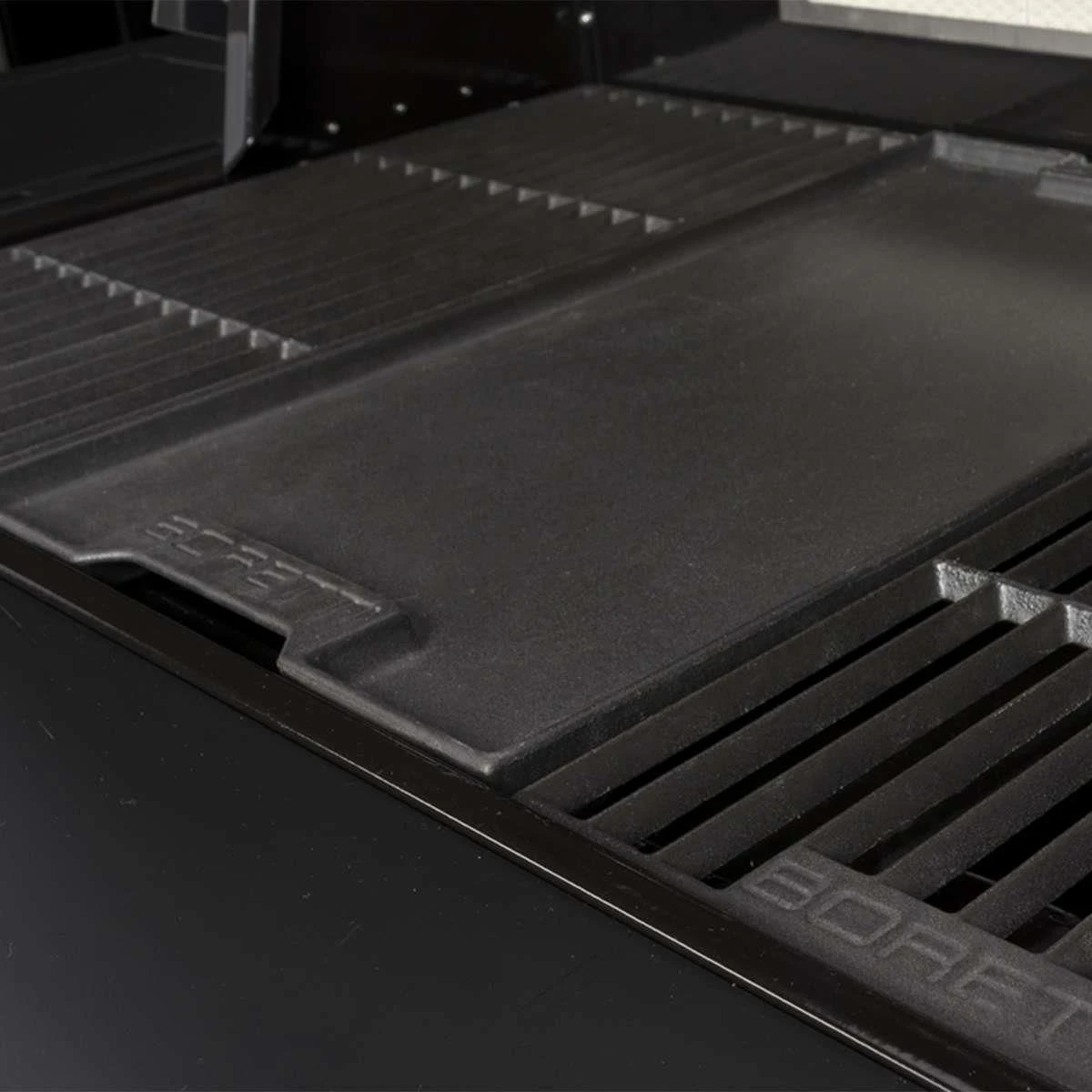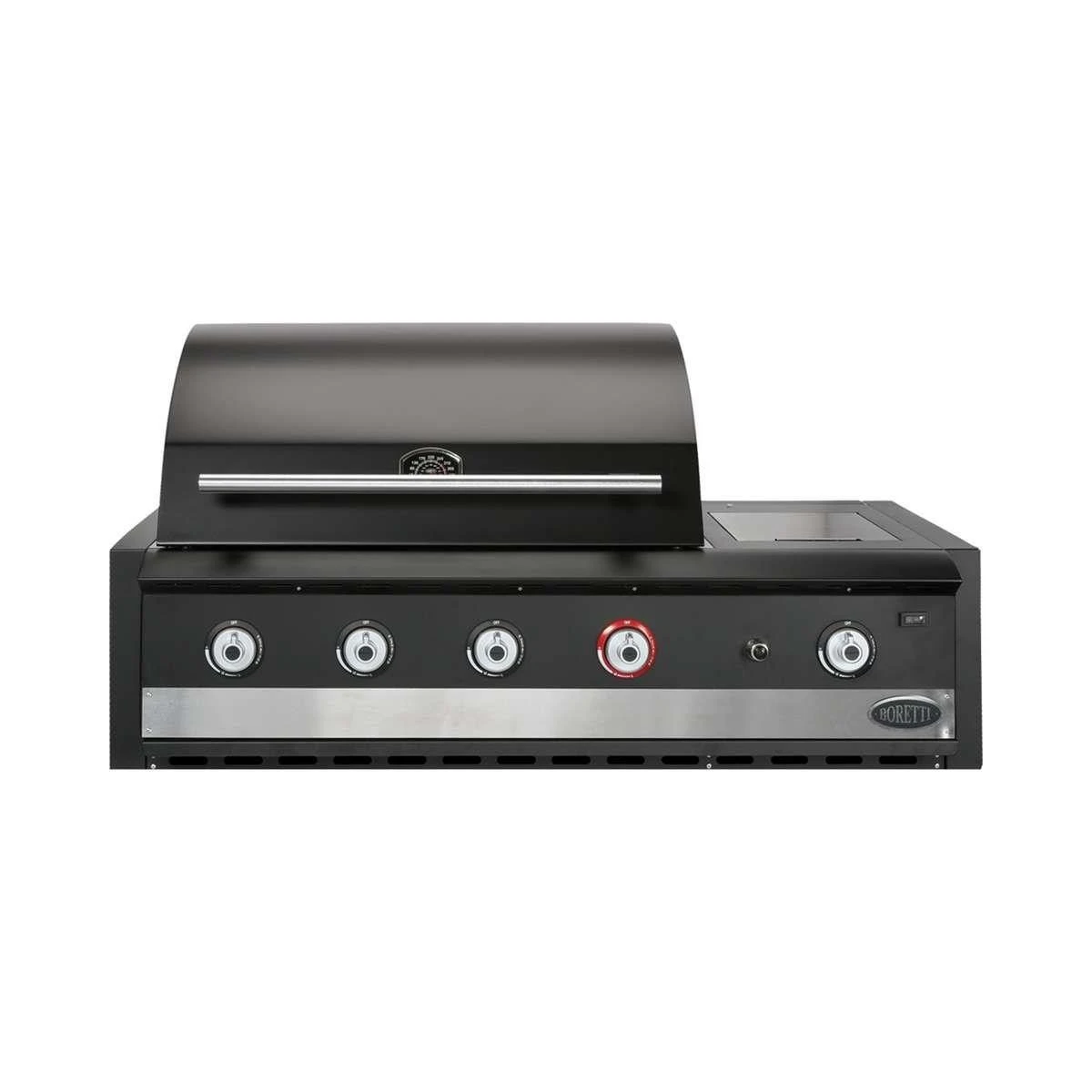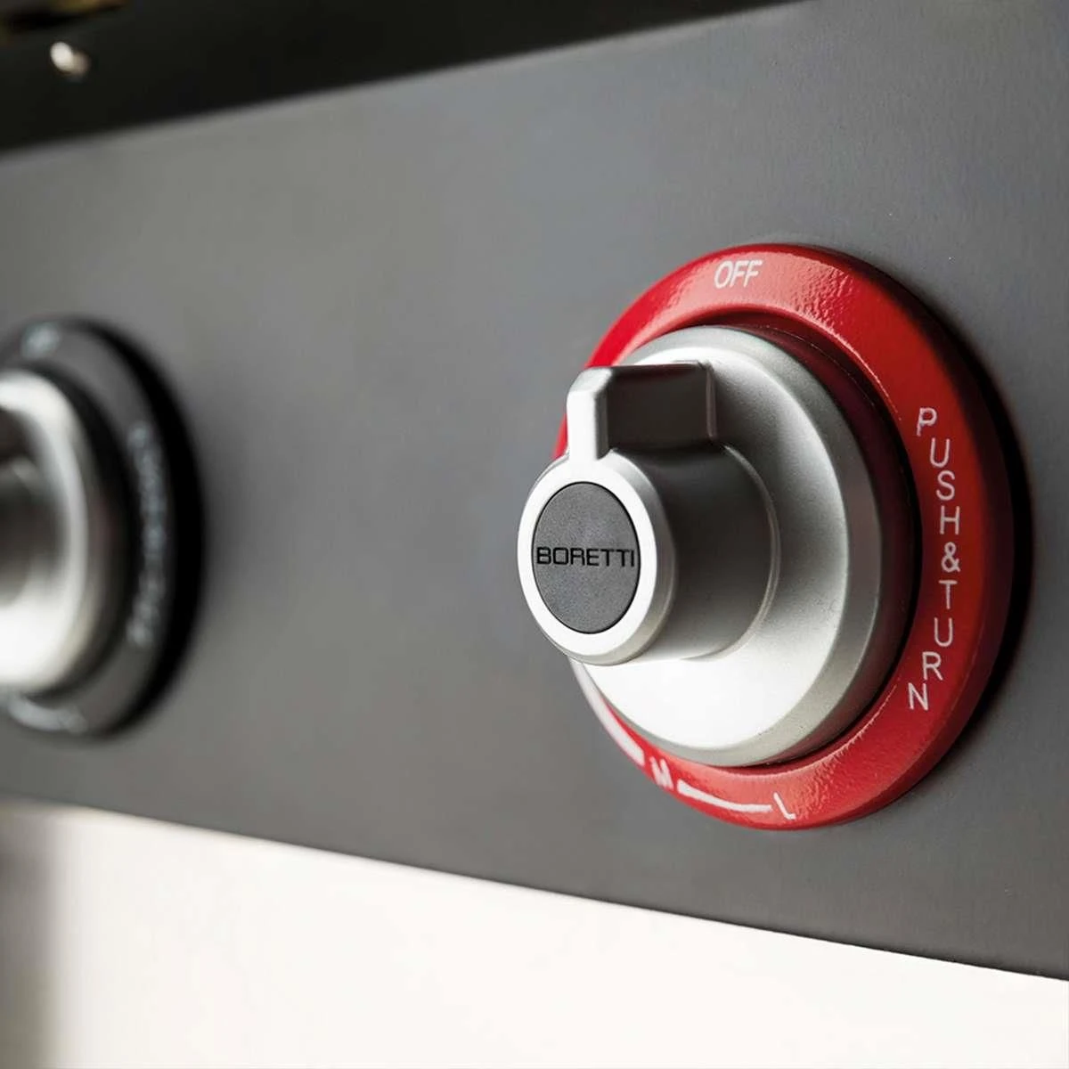 De Boretti Ibrido Top is een hybride barbecue. Dit betekent dat deze Boretti barbecue op zowel gas als houtskool brandt. De barbecue heeft een stijlvol zwart design. Met drie hoofdbranders, een geïntegreerde zijbrander, een infrarood achterbrander, twee gietijzeren grillrooster en een bakplaat kunnen alle soorten gerechten worden bereid op de Ibrido. Verder zijn er een warmhoudrek geplaatst en een vetopvanglade, om de binnenkant schoon te houden. Het kookgedeelte is verlicht en de geïntegreerde thermometer geeft altijd de juiste temperatuur aan.