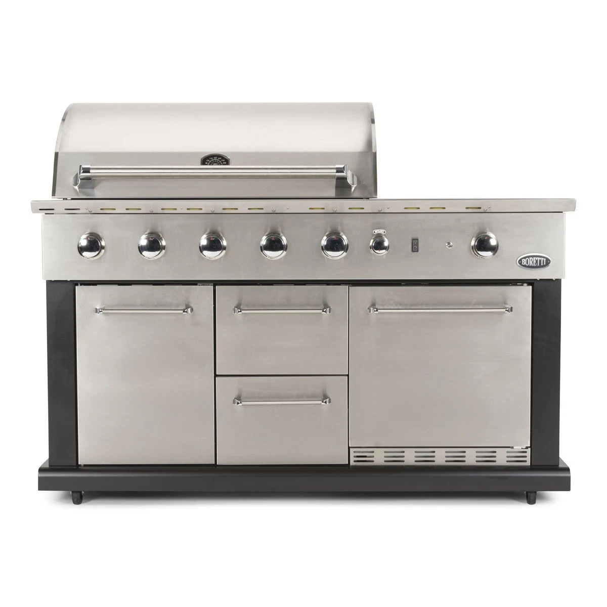 De Boretti Luciano buitenkeuken met koelkast is een zeer complete buitenkeuken. Deze Boretti buitenkeuken wordt geleverd inclusief koelkast en een opbergkast met opberglades. De Luciano buitenkeuken is uitgerust met vier sterke gasbranders, waarbij de infraroodbranders extra hitte creëren zodat u uw vlees gemakkelijk dicht kunt schroeien. Deze buitenkeuken is zeer compleet en ideaal voor de echte barbecueliefhebber.