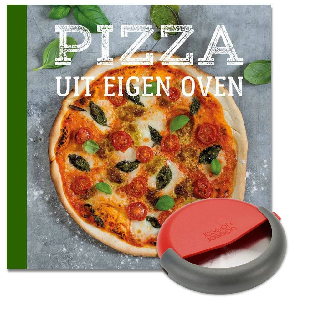 Deze geschenkset van Bowls and Dishes bestaat uit het Pizza uit eigen oven receptenboek en een Joseph Joseph pizzasnijder. In het Pizza uit eigen oven kookboek vindt u 35 heerlijke recepten voor flammkuchen, Italiaanse en Amerikaanse pizza’s. De pizzasnijder van Joseph Joseph heeft een roestvrij staal mes dat makkelijk te verwijderen is zodat het goed schoon te maken is. Dankzij de geïntegreerde mesbeschermer kunt u de pizzasnijder veilig opbergen.