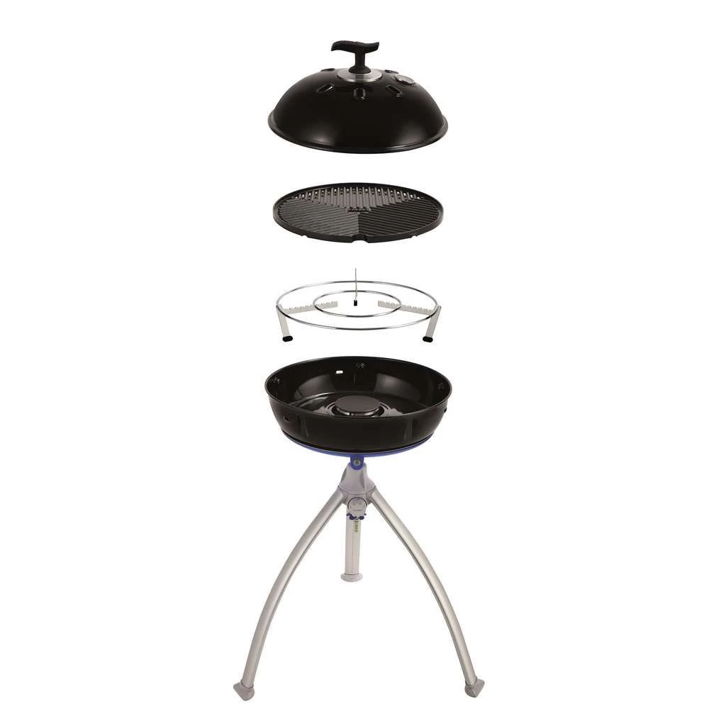 De Cadac Grillo Chef 40 BBQ & Dome gasbarbecue is een zeer compacte barbecue die zonder problemen opgezet kan worden. Het onderstel is los te schroeven en makkelijk mee te nemen in de meegeleverde draagtas. De barbecue wordt meegeleverd met een barbecuerooster, pannendrager en deksel.