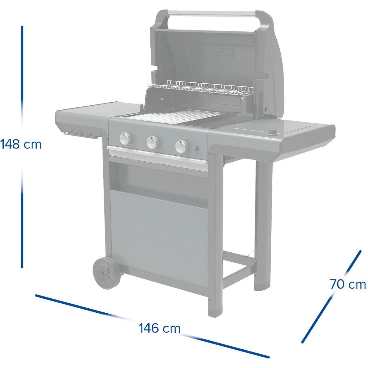 De Campingaz 3 Series Select S gasbarbecue is een ruime barbecue met drie branders en een kookoppervlakte van 46 bij 61 centimeter. Deze Campingaz gasbarbecue heeft een geëmailleerd kookoppervlakte en een zijbrander waar perfect de bijgerechten op bereid kunnen worden. Door het ruime warmhoudrek zijn uw grillmogelijkheden enorm veelzijdig, ook kunt u deze verwijderen indien gewenst. Het Blue Flame Power Systeem zorgt voor een versnelde voorverwarming, zeer goede warmteverdeling en minder vlammen zodat uw eten zeer sappig en smakelijk blijft.