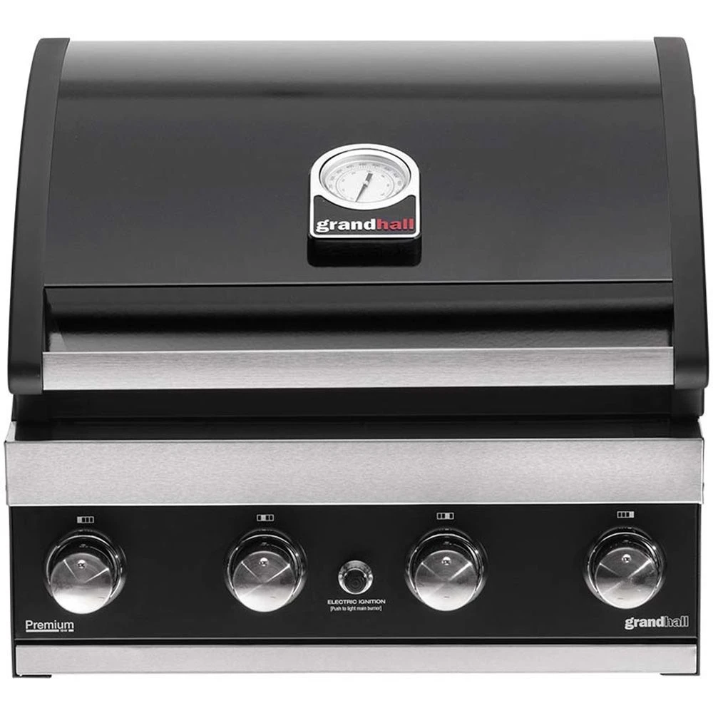 De Grandhall Premium G4 inbouw barbecue heeft alles wat een barbecue nodig heeft. Ontsteek de barbecue in een handomdraai met de elektronische ontsteking. Daarnaast beschikt de barbecue over vier roestvrij stalen branders met een totaal vermogen van 14 kW per uur en is de temperatuur makkelijk in de gaten te houden door de thermometer op de deksel. Het kookoppervlak bestaat uit twee gietijzeren roosters en een gietijzeren bakplaat. Hierop maakt u de mooiste en lekkerste gerechten.