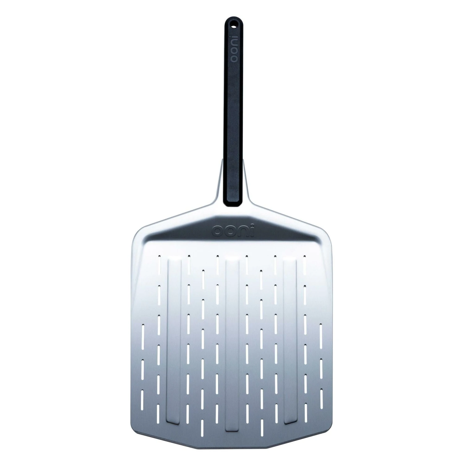 De Ooni 14 inch Perforated pizzaschep is gemakkelijk in gebruik en geschikt voor pizza’s tot een breedte van 36 cm. De schep is ideaal voor het verschuiven, draaien en uithalen van pizza’s uit uw Ooni oven. Ook handig: door de perforaties valt het pizzameel van het deeg, waardoor er geen bloem meer in de oven wordt verbrand.