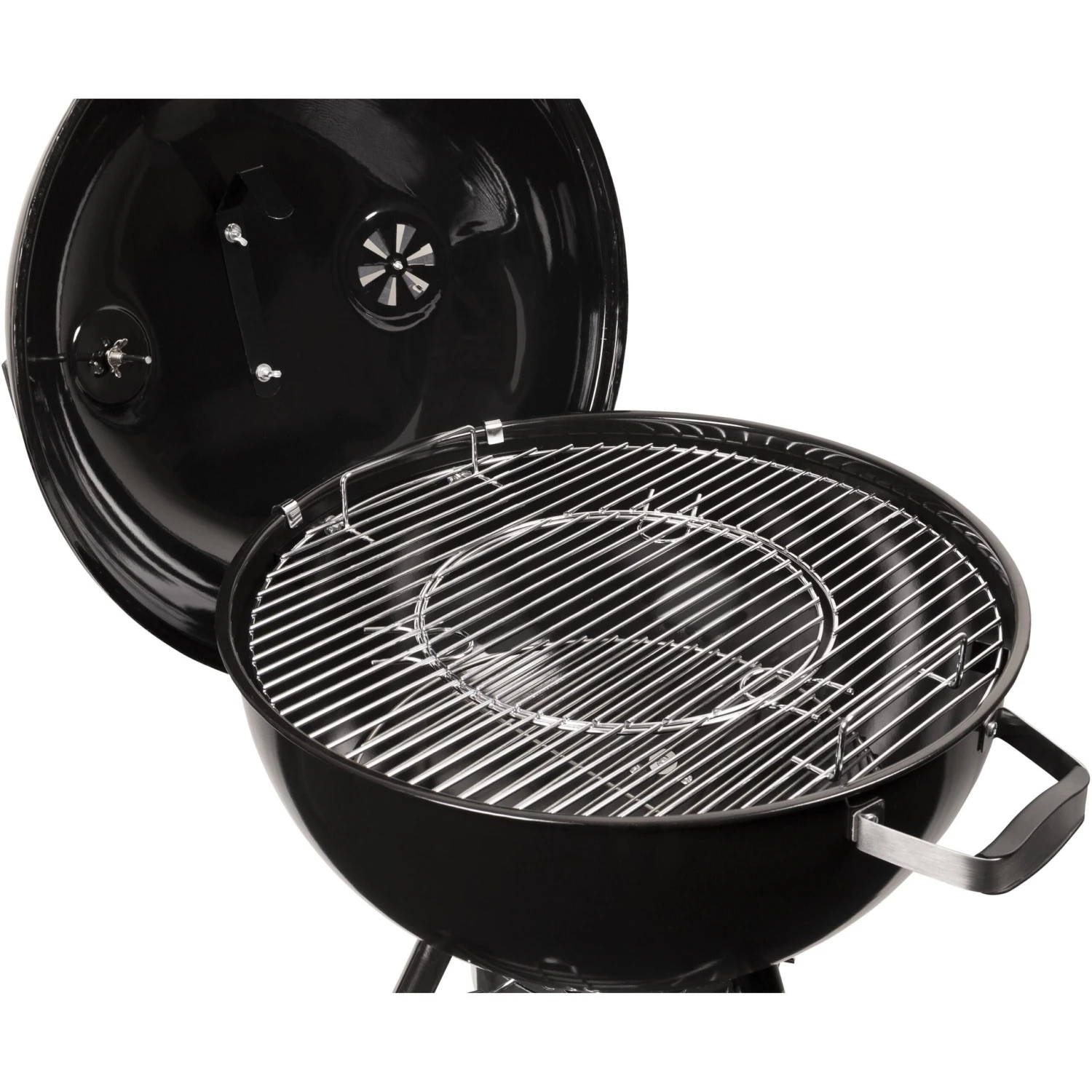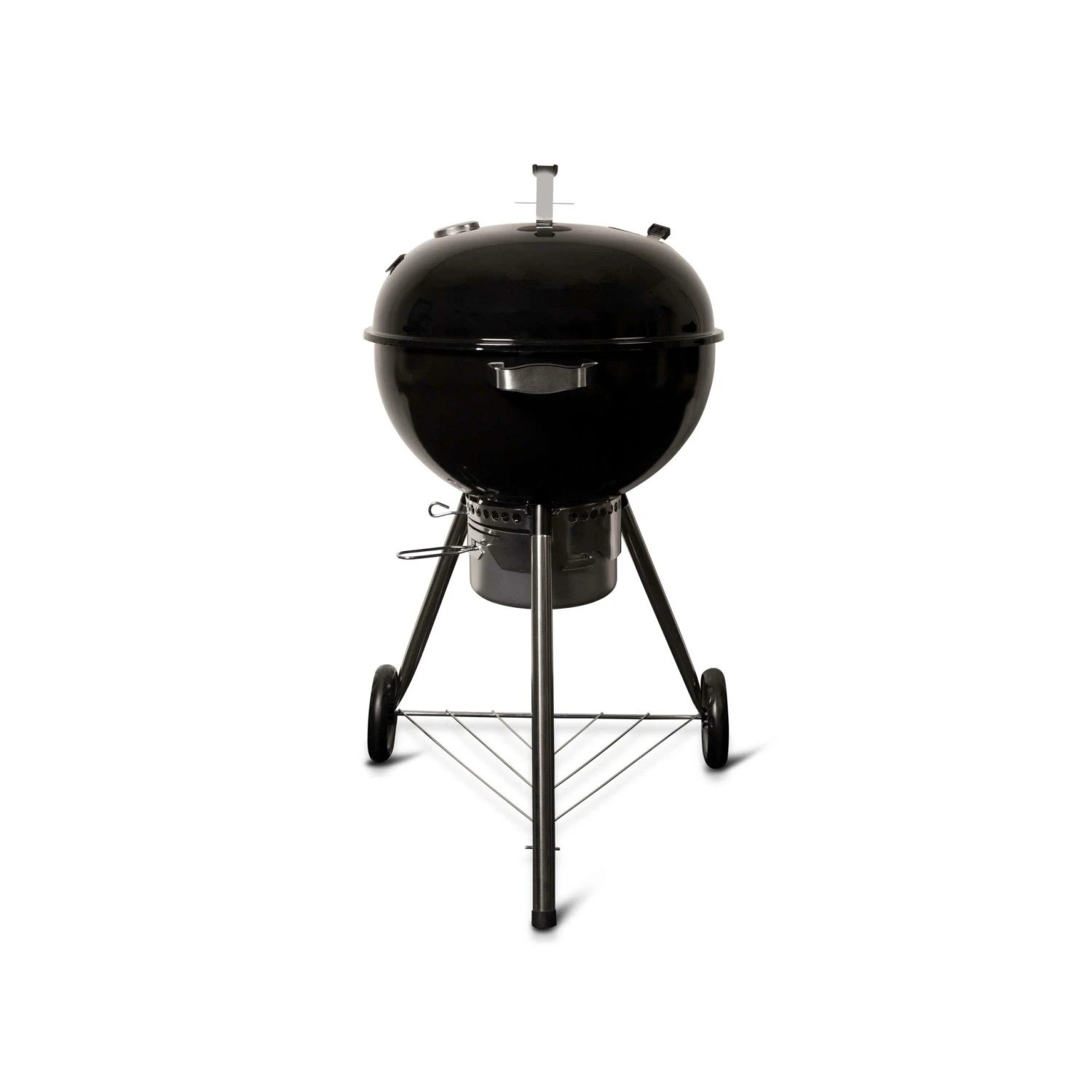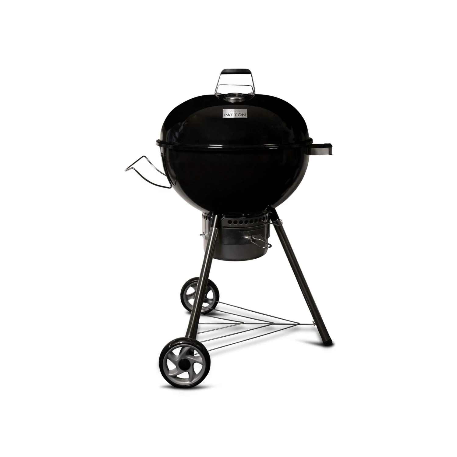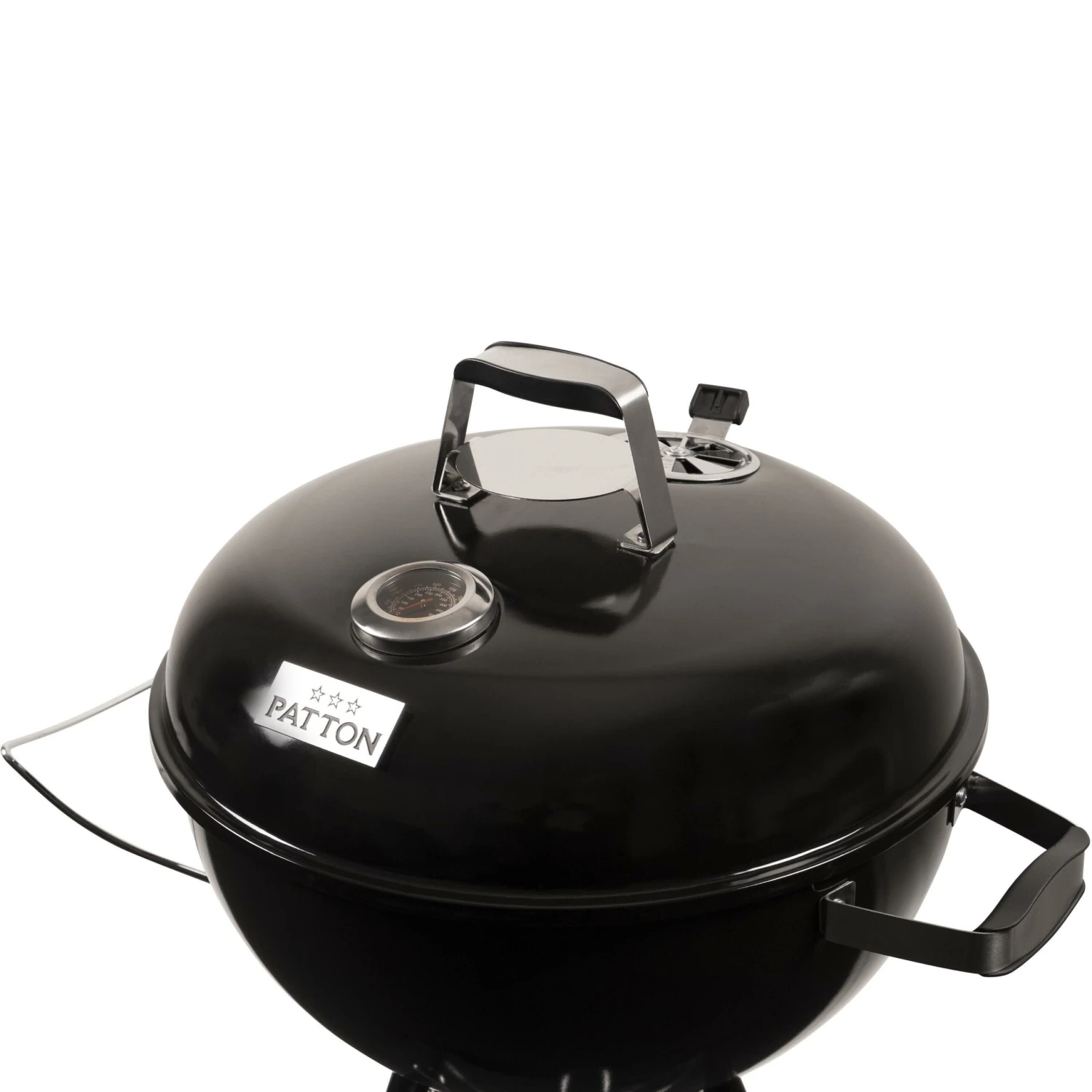 De Patton Kettle Chef houtskoolbarbecue 57 cm in de kleur premium black is een verrijdbare barbecue met een grilloppervlak van 57 centimeter. Deze Patton houtskoolbarbecue heeft een deksel met regelbare ventilatie openingen en thermometer, hierdoor kunt u zeer goed de temperatuur controleren. Verder is de barbecue voorzien van een luxe as-opvang beker waardoor het schoon maken zeer gemakkelijk wordt. De houtskoolbarbecue heeft wielen, hitte beschermende handvatten en een dekselhouder die ook gebruikt kan worden als handdoekrek.