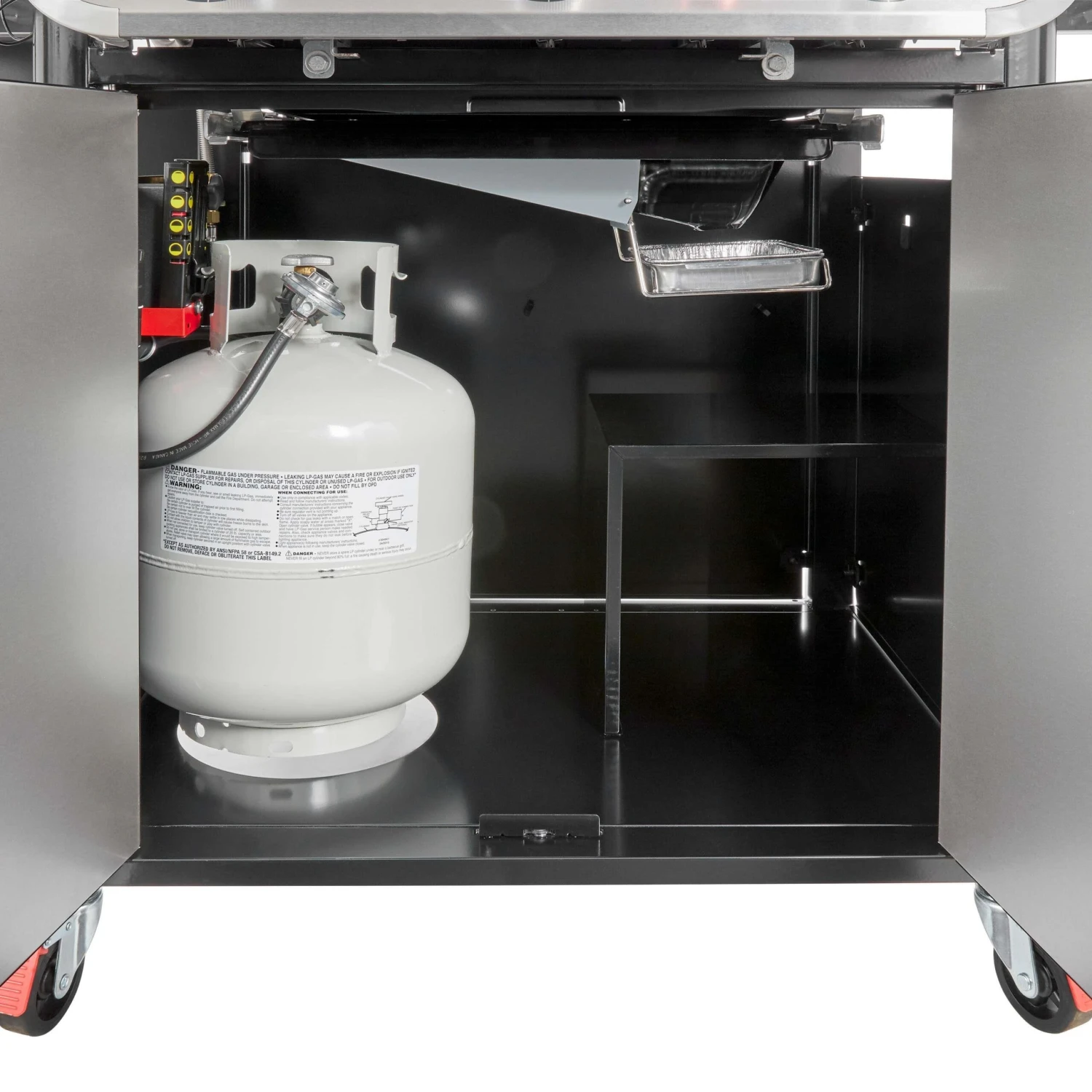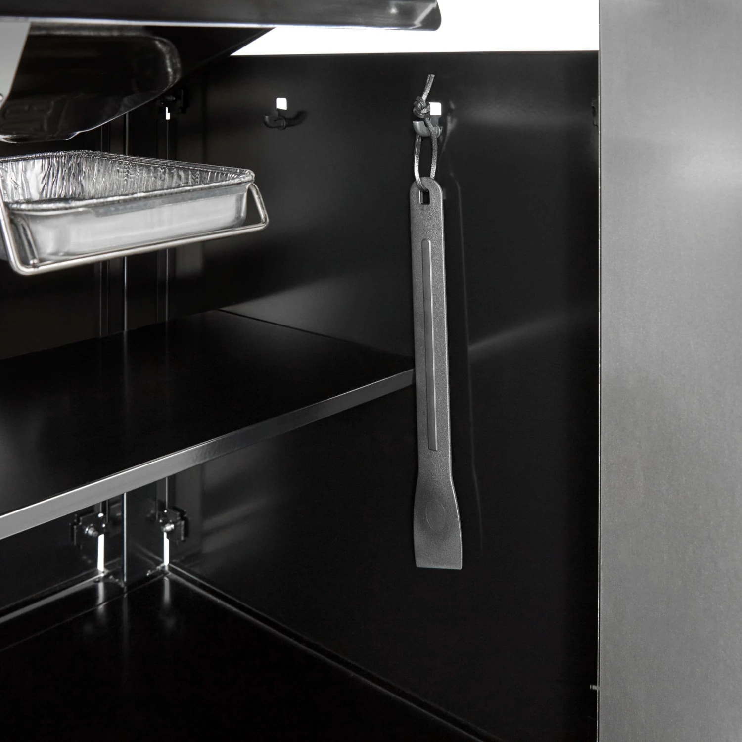 In de barbecuelocker van de Weber Genesis E-335 gasbarbecue kunt u al uw grillware en barbecuegereedschap kwijt. Op de zijbrander kunt u groenten bakken of bijvoorbeeld sauzen opwarmen. De barbecue heeft 6 gereedschapshaken en een makkelijk schoon te maken vetopvangbak. Het totale grilloppervlak is 5077 cm2.